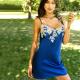 Nuisette Marjolaine en soie précieuse et dentelle de Calais Bleu, disponible de la taille 38 à la taille 44.