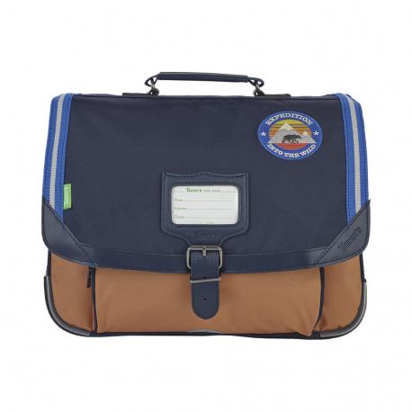 Le cartable Loan associe deux coloris tendances : le marine et le camel. Associé à une ganse bi-matière dans les tons bleus et à un patch brodé sur le thème de l’aventure, il sera le chouchou des petits explorateurs.