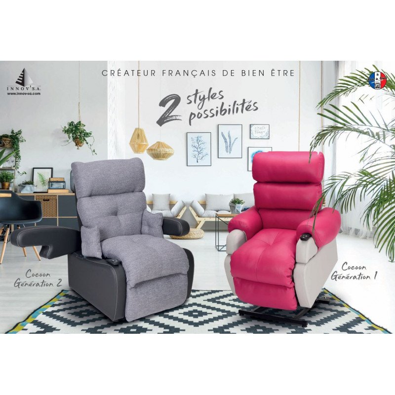 Le fauteuil COCOON est un fauteuil releveur électrique et ultra-confortable, multi-positions qui facilite l'accès aux soins et les transferts grâce à ses accoudoirs amovibles et escamotables.