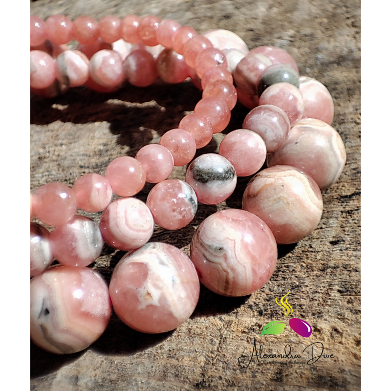 Bracelet Rhodochrosite d'Argentine perles 04mm, 06mm ou 10mm qualité A+