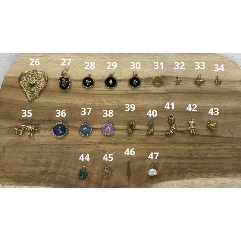 VEUILLEZ INDIQUER LES NUMÉROS DES 5 CHARMS CHOISIS