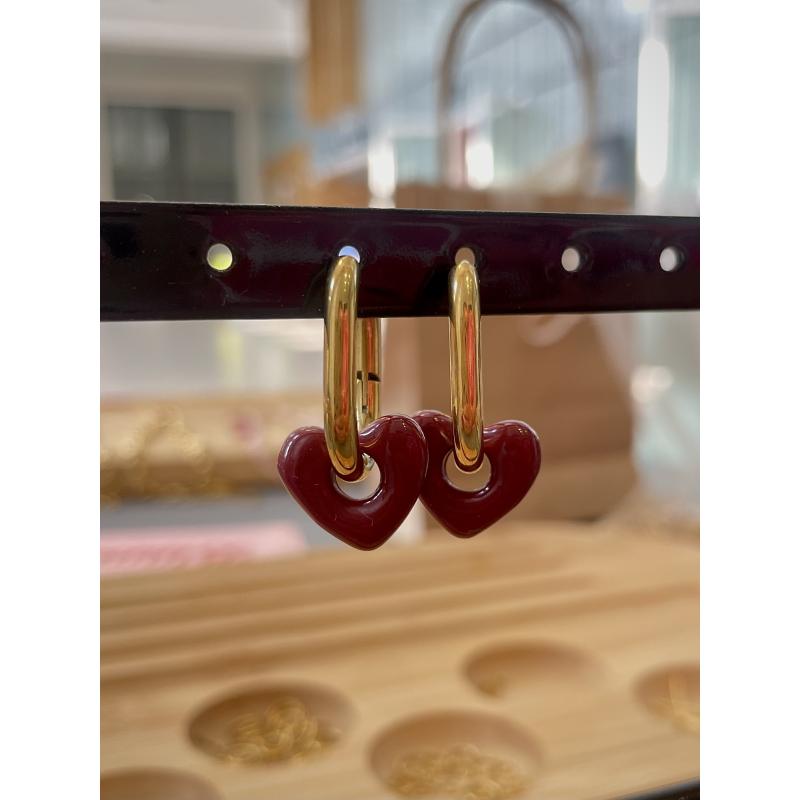 Boucles en acier inoxydable doré et coeur bordeaux