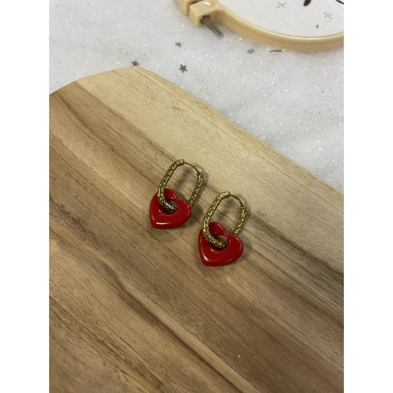 Boucles en acier inoxydable doré et coeur rouge ou vert sapin