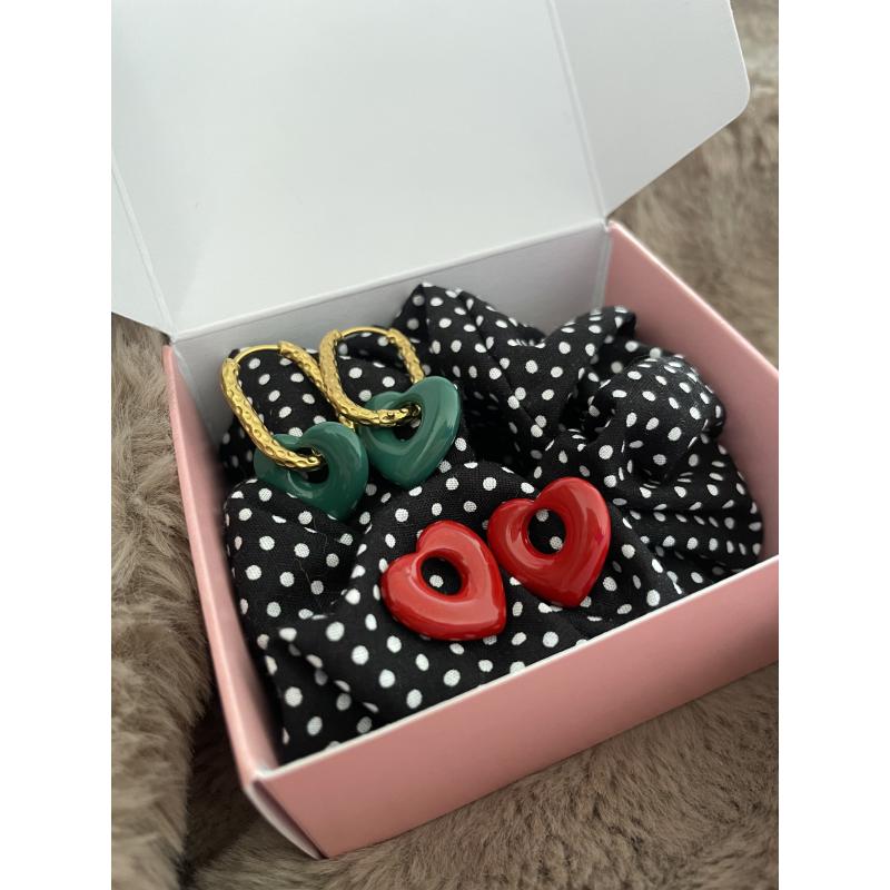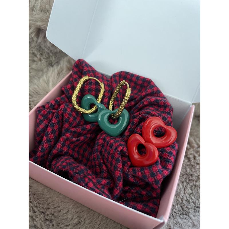 les boucles d’oreilles : Plutôt rouge vif ou vert sapin ? Plus besoin de choisir ! Grace à LE COFFRET, il sera possible de changer les charms de vos boucles d’oreilles selon vos envies et votre look.