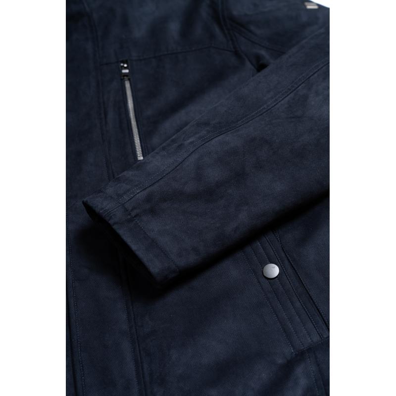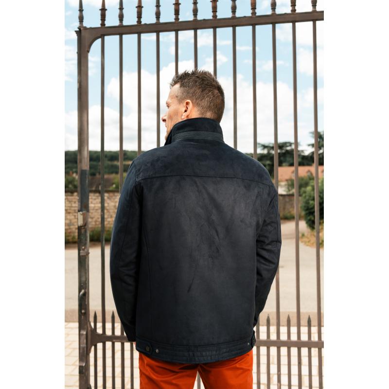 Ce blouson long en suédine marine vous séduira avec son col en rib, ses poches pratiques et ses surpiqûres fantaisie. Entièrement doublée, il allie confort et style. Portez le avec un jean brut ou un chino pour un look chic et moderne.