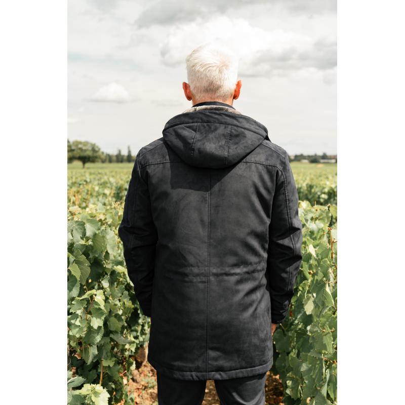 La nouveauté de la saison pour un look vintage et casual à la fois: belle parka homme longue dans un tissu suède armuré au touché doux ! Grandes poches intérieures fermées par des zips.