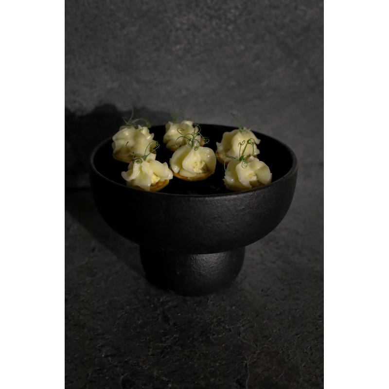 Pièces cocktails apéritives "Plurielles salées". Plateau de 6 blinis de chou fleur & haddock