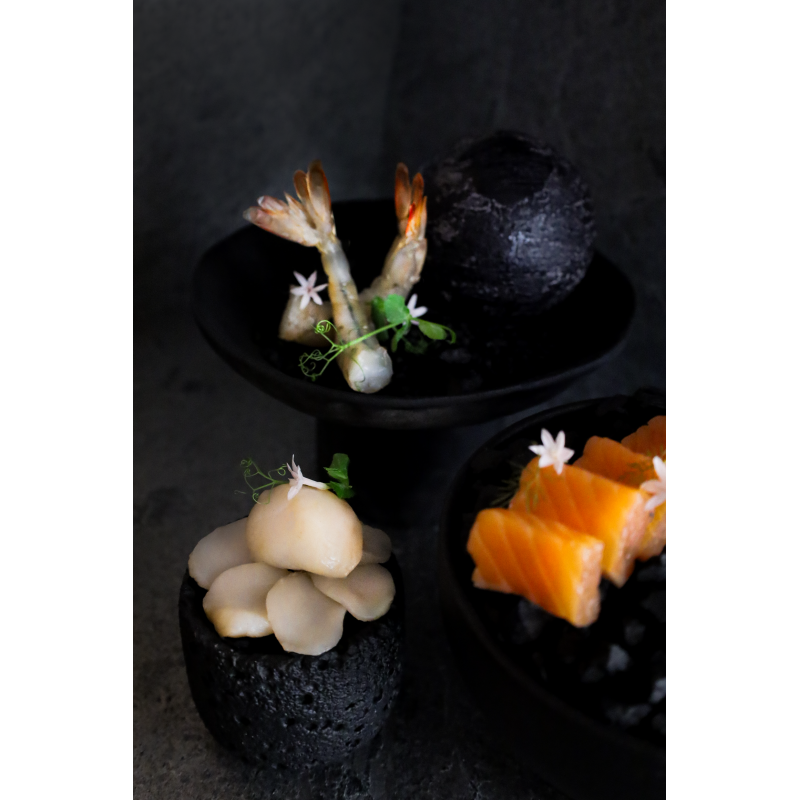Assortiment de noix de Saint-Jacques française fumée, crevette fumée & cœur de saumon fumé. Fumaison maison réalisée dans notre atelier (+/-400g)