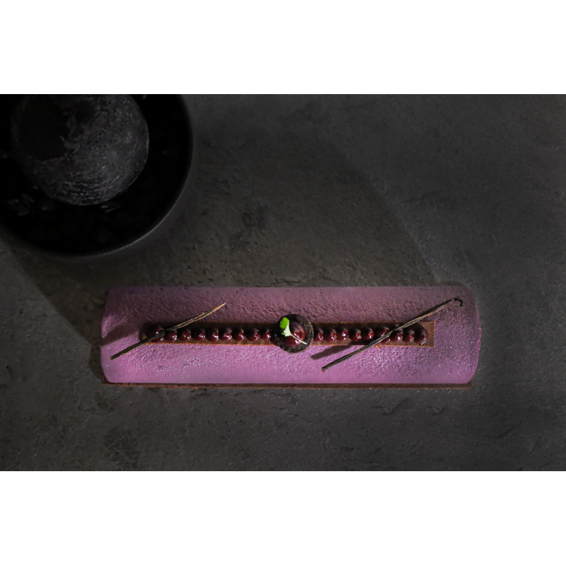 La bûche Galaxie 6-8 parts : Myrtille - cassis - vanille de Madagascar. Une exclusivité festive Pluriel' proposée en édition limitée