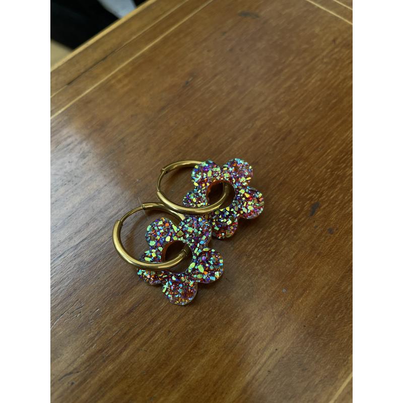 Boucles d'oreilles en acier inoxydable et fleur pailletée, déclinable en 3 modèles