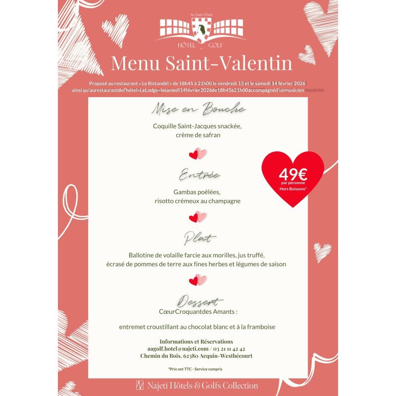 Nous vous proposons un pack complet spéciale Saint-Valentin, valable uniquement le 14 février 2026.