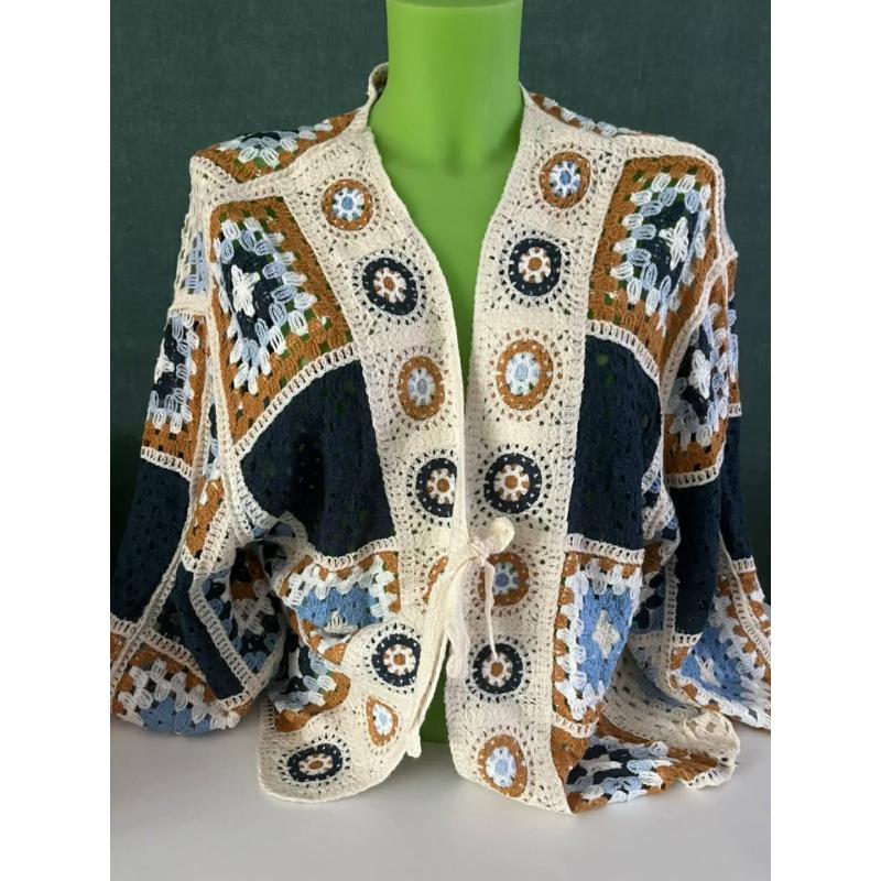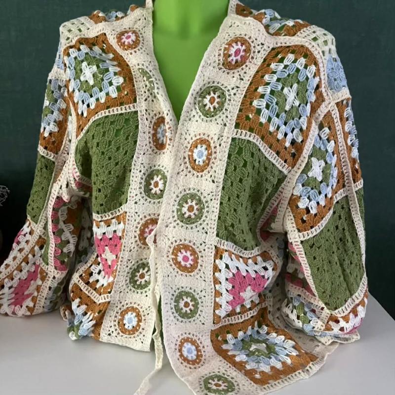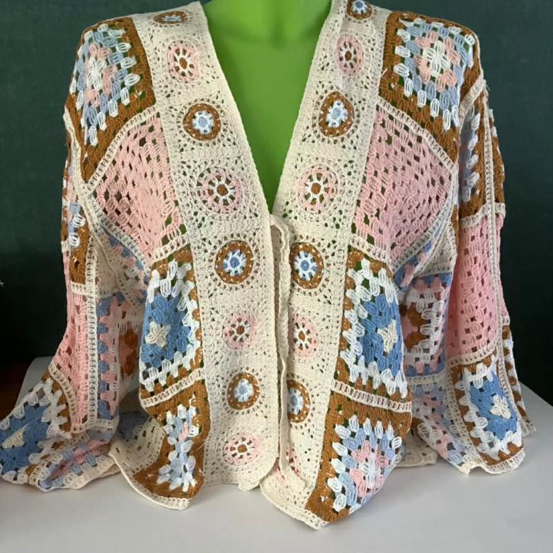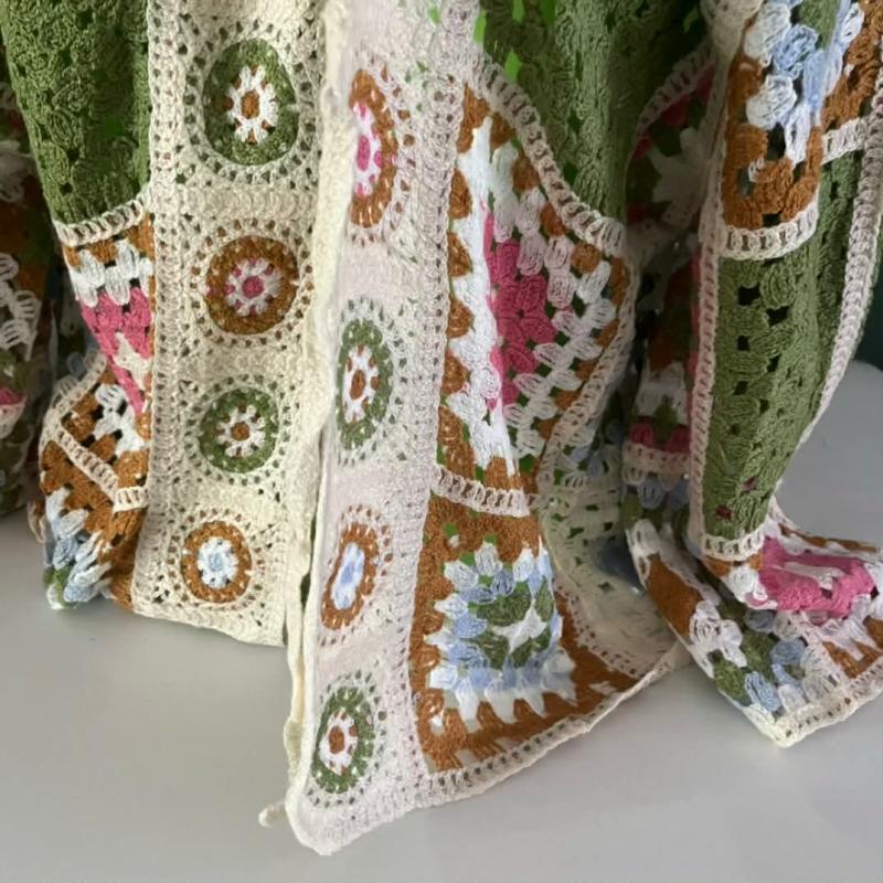 Gilet au crochet motifs florales style bohême, trés tendance.