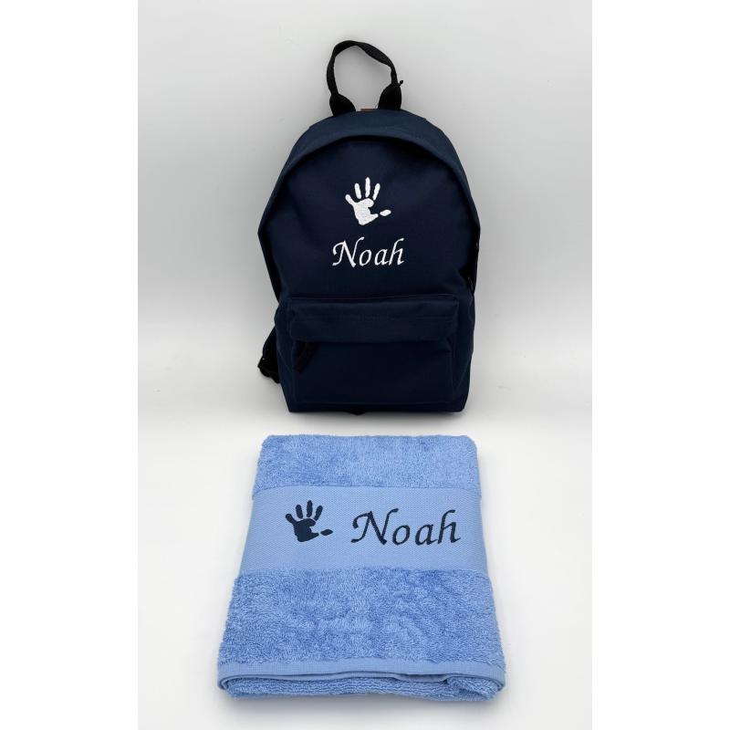 Sac à dos personnalisé avec petit motif et serviette assortie