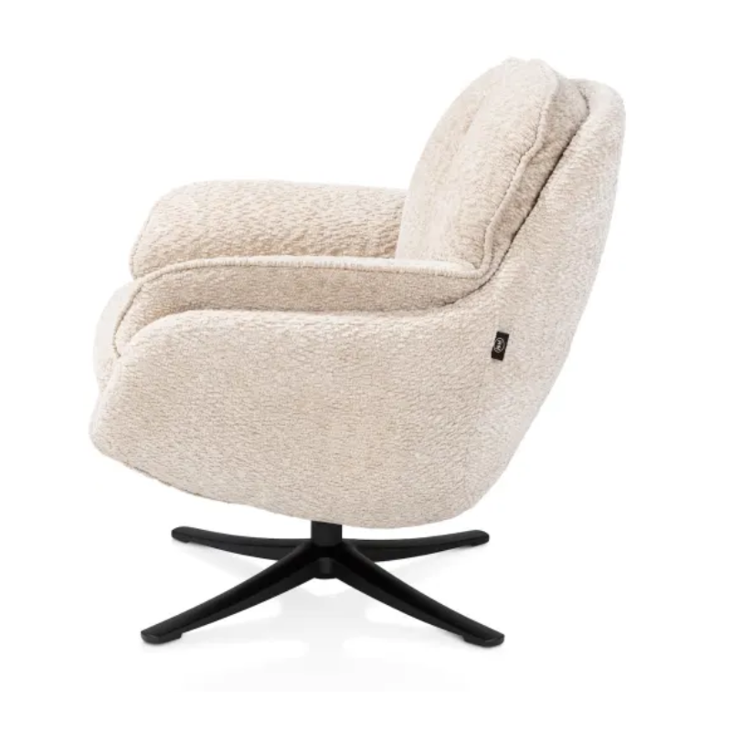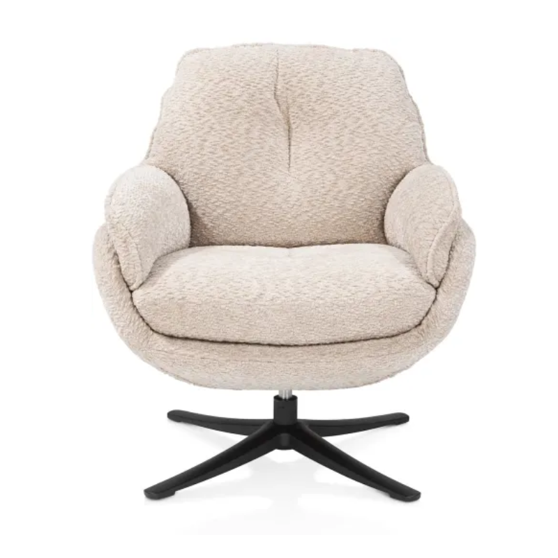 Fauteuil pivotant 360° Berenger L71 x P81 x H78 avec pied métal noir (pivotant) Tissu Valencia (olive, creme, cuivre, corail, jaune ocre); 100% polyester. poids: 14.7kg A retrouvez via notre siteweb : https://www.heth.fr/hh/fauteuils/fauteuils-pivotants/berenger-fauteuil-pivotante-valencia-creme-73422-cre/