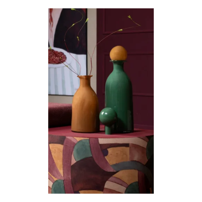 Chez COCOmaison, nous l'appelons un vase, mais en réalité, Marthe est bien plus que cela. La forme épurée du vase en verre blanc, haut de 39 cm, est littéralement couronnée d'un magnifique bouchon couleur aubergine. Vous pouvez bien sûr simplement placer ce bouchon sur le vase, afin que le Marthe ressemble à une élégante carafe. Si vous retirez le bouchon en verre, vous pouvez mettre quelques fleurs ou branches élégantes dans le vase, par exemple de la même couleur que la boule. Mais quel que soit le nom que vous lui donnez ou l'usage que vous en faites, le Marthe est un magnifique accessoire de décoration dont vous ne vous lasserez pas de sitôt. Si vous souhaitez mettre le vase davantage en valeur, achetez-le avec son petit frère : les couleurs sont exactement inversées et le vase est légèrement plus haut et plus élancé. Vous préférez une autre couleur ? Le vase Mies est disponible dans le même modèle dans une combinaison de couleurs orange et vert. A retrouver depuis notre siteweb : https://www.heth.fr/hh/decorations/vases/marthe-vase-h39cm-multicouleur-53323-mcl/
