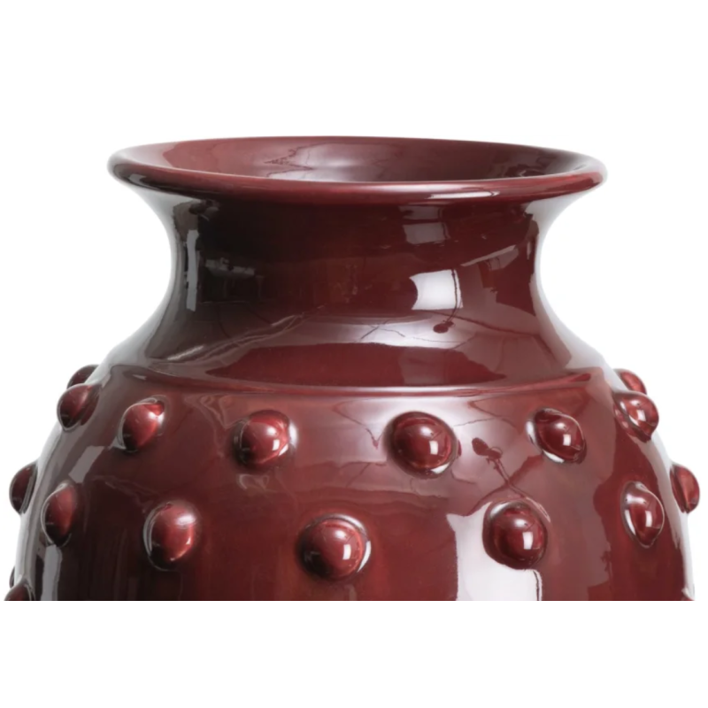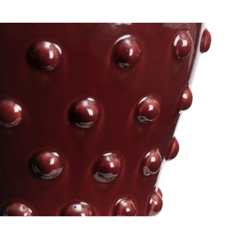 Ce vase n'a pas besoin d'un bouquet de fleurs pour se démarquer ! Le vase Kathy a une forme classique inspirée de l'Antiquité, mais avec une touche de fantaisie avec des petites billes décoratives sur l'extérieur. Ce vase de COCOmaison est fabriqué à partir de 100% de céramique et est doté d'un beau vernis dans une profonde couleur bordeaux. Grâce à sa forme et à sa couleur, ce vase a vraiment une allure luxueuse. Kathy mesure 44 cm de hauteur et est magnifique avec quelques branches à l'intérieur, mais il est également superbe sans rien à l'intérieur de votre décoration intérieure. A découvrir en boutique ou depuis le sitweb : https://www.heth.fr/hh/decorations/vases/kathy-vase-h44cm-rouge-51264-roo/