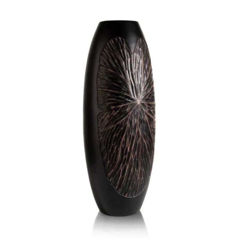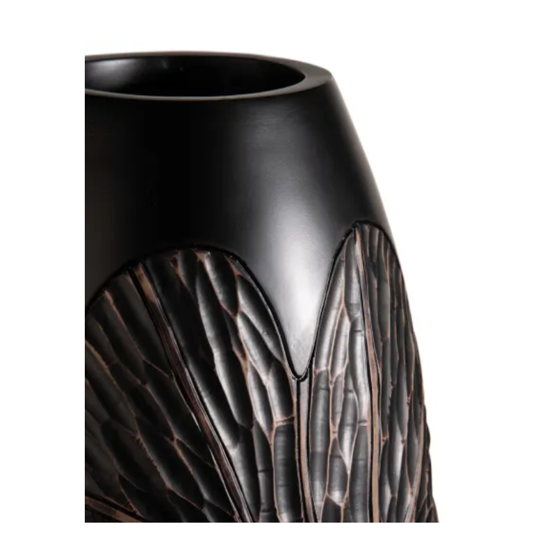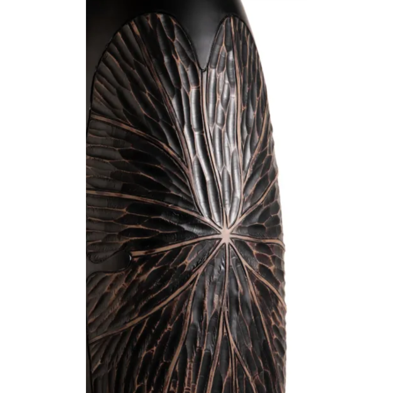 FAYE est un magnifique grand vase noir de la collection COCOmaison ; il arbore un motif gravé en forme de feuille. Ce motif confère un style particulier au vase qui trouve très bien sa place dans un intérieur authentique ou un peu plus ethnique. En garnissant le vase de quelques longues branches ou d'herbes de la pampa, vous attirez davantage l'attention sur le motif naturel. Ce vase FAYE mesure 75 cm de haut, il a une forme large, mais existe aussi dans une forme un peu plus étroite et plus haute. Les deux sont fabriqués en polyrésine, un matériau léger, solide et imperméable. A retrouver depuis notre siteweb : Vase H75cm noir Faye | COCOmaison