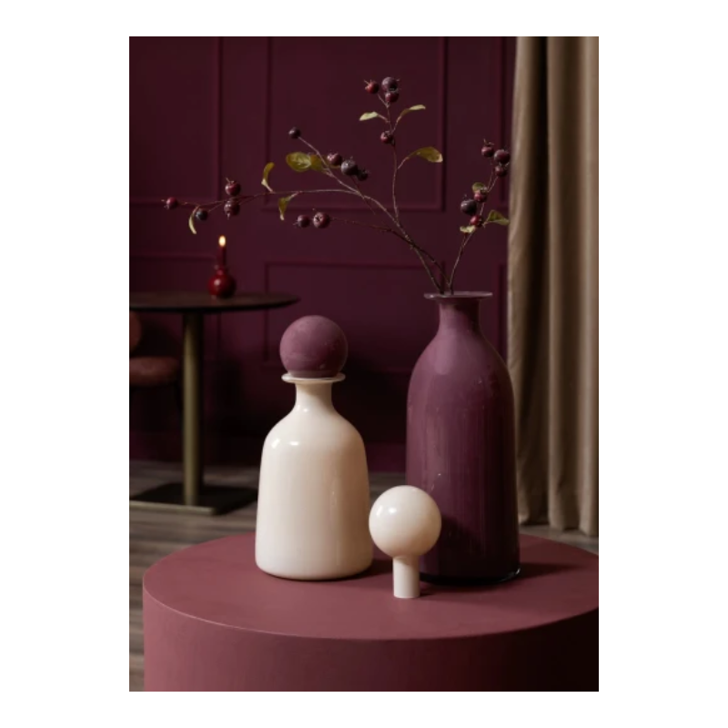 Chez COCOmaison, nous l'appelons un vase, mais en réalité, le Mies est bien plus que cela. La forme épurée de ce vase en verre vert, haut de 48 cm, est littéralement couronnée d'un magnifique bouchon jaune ocre. Vous pouvez bien sûr simplement placer ce bouchon sur le vase, afin que le Mies ressemble à une élégante carafe. Si vous retirez le bouchon en verre, vous pouvez mettre quelques fleurs ou branches élégantes dans le vase. Mais quel que soit le nom que vous lui donnez ou l'usage que vous en faites, le Mies est un magnifique accessoire de décoration dont vous ne vous lasserez pas de sitôt. Si vous souhaitez mettre le vase Mies encore plus en valeur, achetez-le avec son petit frère : les couleurs sont exactement inversées et l'autre vase est légèrement plus bas et plus large. Le vase Marthe a le même modèle dans une combinaison de couleurs blanc et violet. A découvrir en boutique ou depuis notre site web : COCOmaison, Mies vase H48cm - Multicouleur