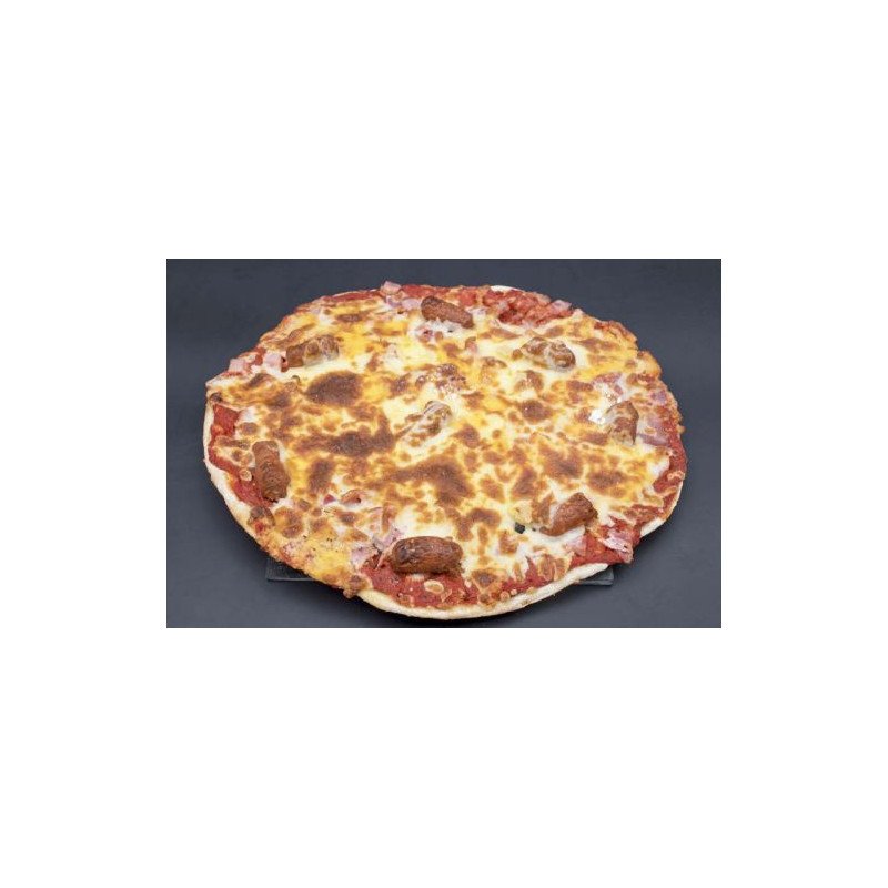 Ingrédients : tomate, jambon, merguez, mozzarella