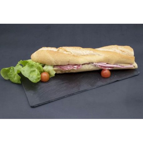 Ingrédients : baguette, beurre, rosette, mortadelle, jambon cru