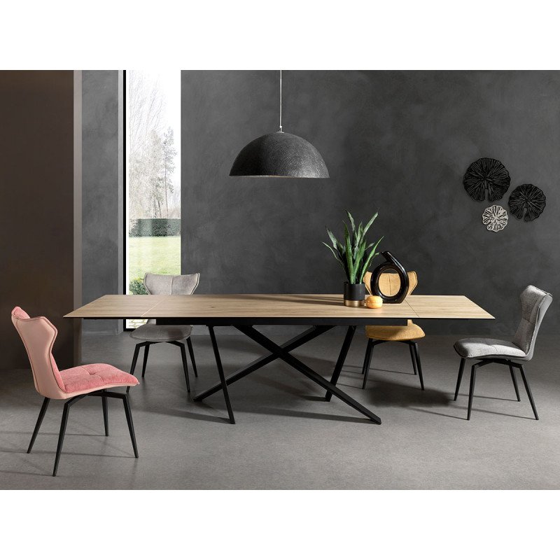 table repas modèle Forrest en céramique effet bois en 180-95cm +2 allonges de 50cm en bout, pied métal .