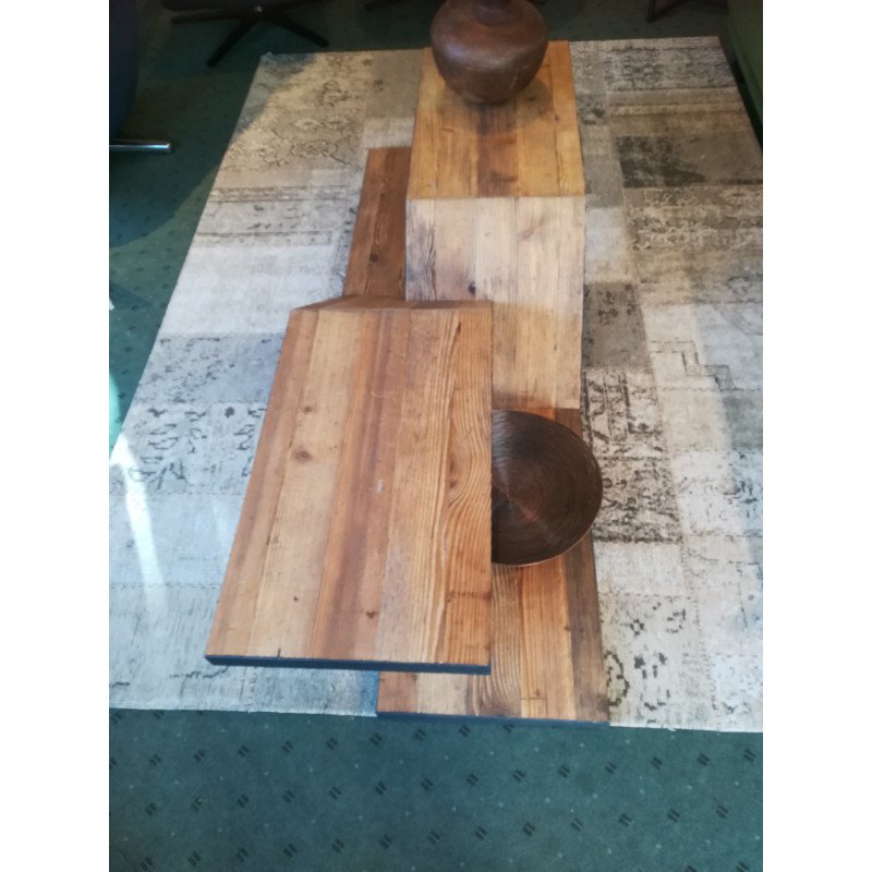 PTable basse en pin ancien recyclé finition naturelle et laque ardoise . Dimensions 37-162-60cm HLP