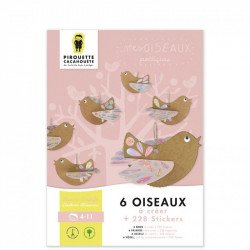 Une activité manuelle romantique : 6 oiseaux en papier et carton à créer, à parer de leurs plumes autocollantes et à suspendre au bout d'un fil doré inclus.